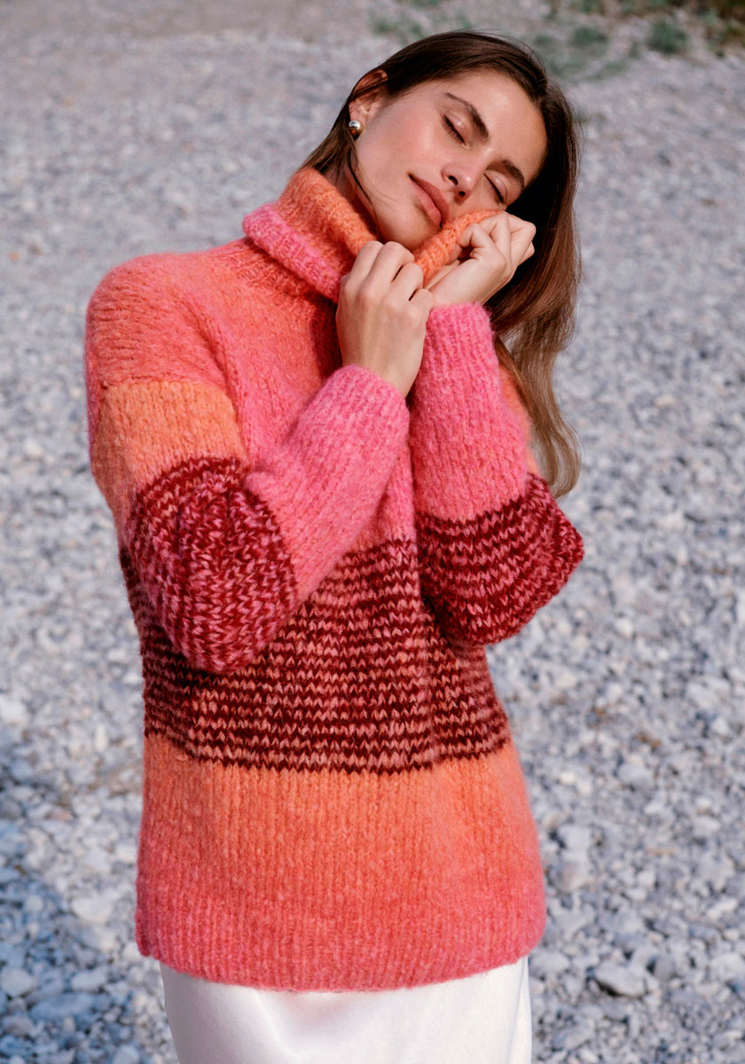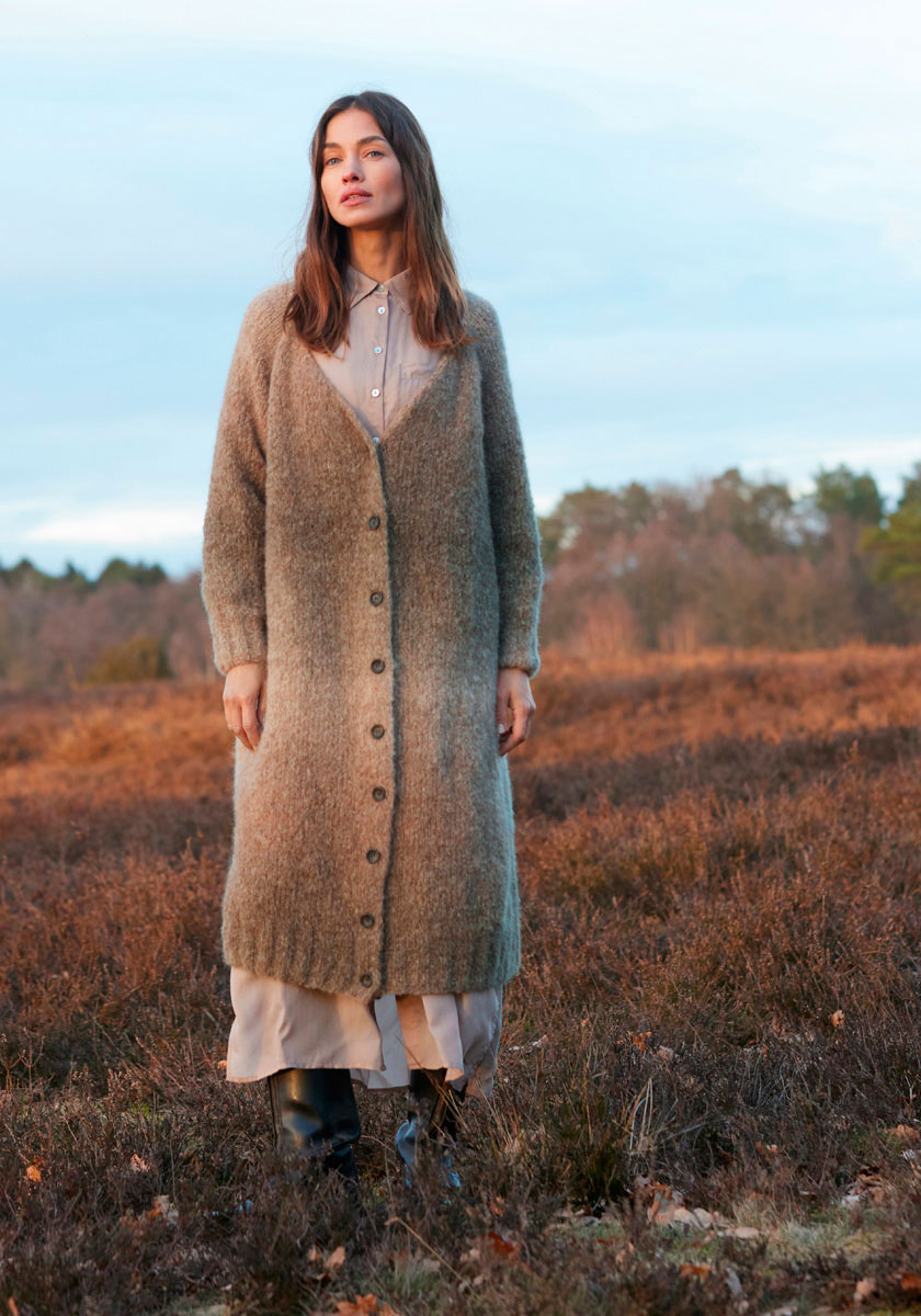 Лана Гросса Авио — это нежная, легкая, пушистая и теплая пряжа с эффектом флиса. Она изготовлена из тонкого волокна альпаки, нанизанного на полиамидную основу, что придает ей особую структуру. Мотки этой пряжи выглядят очень большими, но на самом деле в них всего 50 грамм. Пряжа очень экономична в использовании, и для создания длинного пальто среднего размера потребуется всего около 400 грамм. Lana Grossa Avio подходит для вязания любых плечевых изделий, а также аксессуаров, таких как шапки, шарфы и палантины. Цветовая палитра Avio включает 14 цветов деграде с плавными переходами от светлых к темным оттенкам.