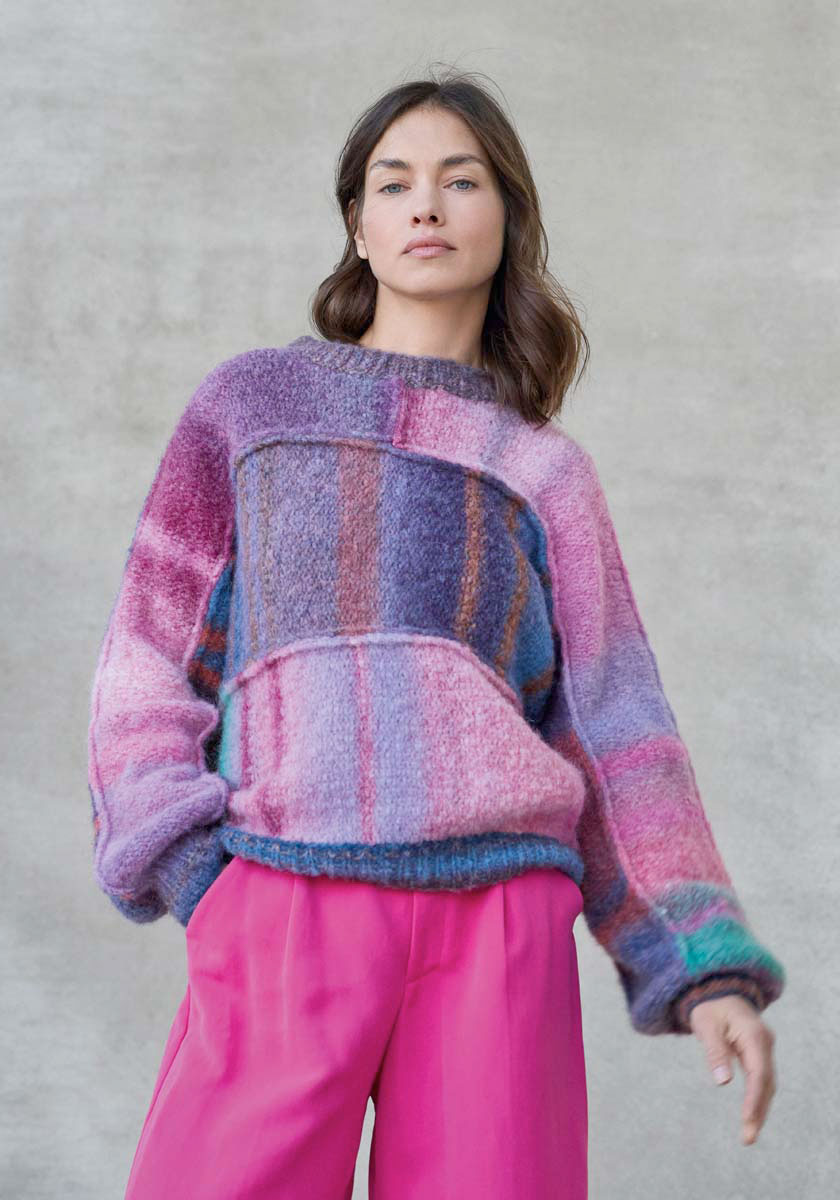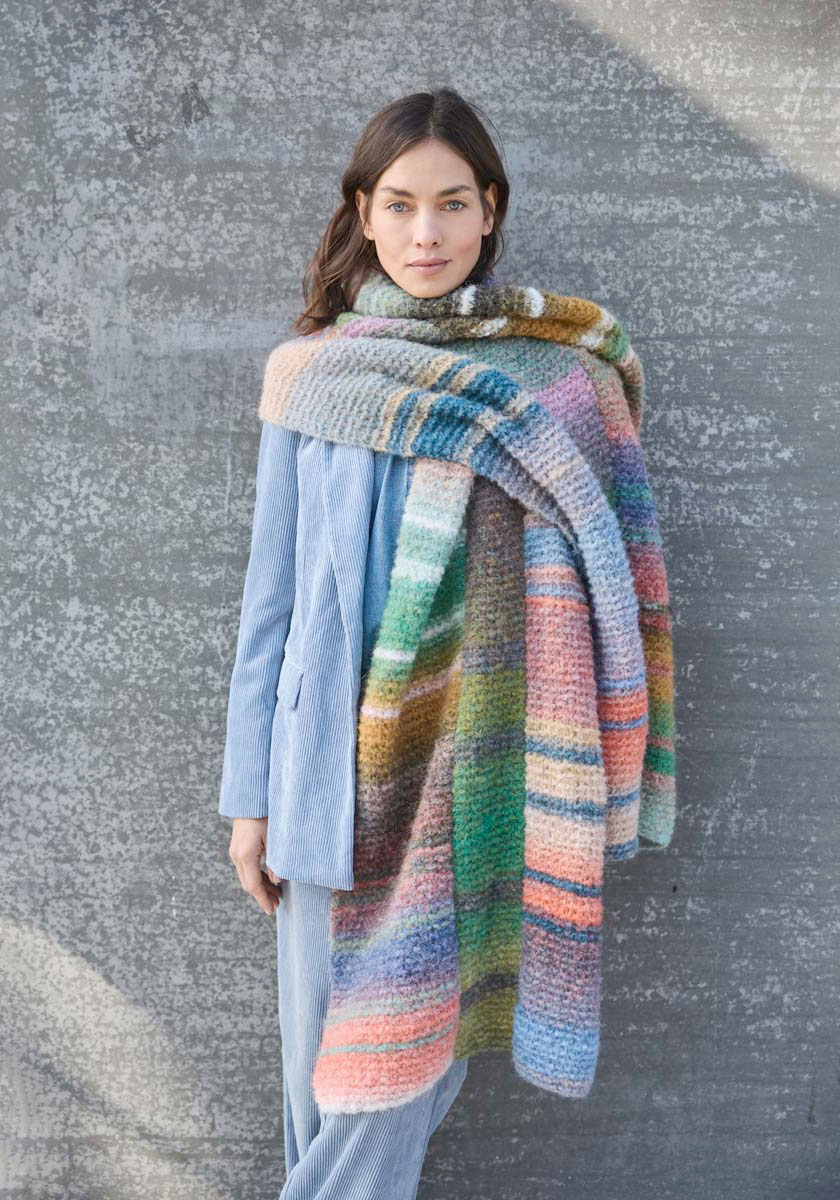 Идеи для проектов: объемные снуды и шапки-бини, которые создаются буквально за вечер. Пушистые, как облако, шарфы и палантины с потрясающими цветовыми переходами. Стильные и уютные пледы и накидки, в которые хочется закутаться холодным вечером. Модные кардиганы свободного силуэта и свитера.